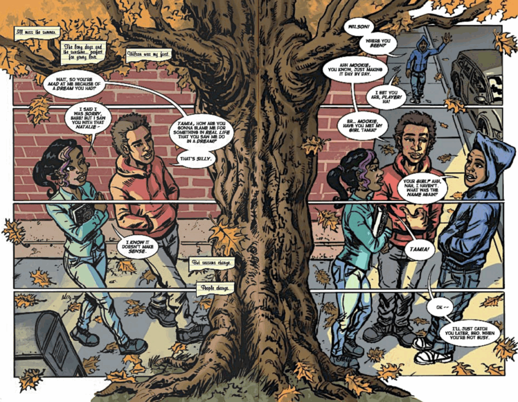 The first round of collaborations had produced a wide variety of narrative content. Which was wonderful. That’s exactly what the kids had been encouraged to do: tell whatever story they felt was worth telling. But it also presented a challenge in bringing all the disparate elements together into a harmonious whole. That was the challenge presented to the comics production team seeking to make “Back of Yards’” very much a reality.